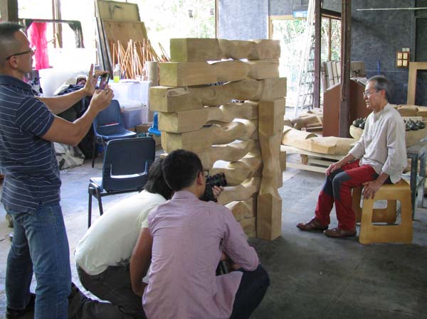 Last week independent writer and all round multi-faceted personality Woon Tai Ho interviewed fahcheong for the Peak. Tai Ho came by the workspace in the afternoon, and sat among the wood and stone pieces that will form the basis for the upcoming exhibition. It was very interesting for all involved, especially when the photographer and art director came by to take photos of the artist. We made them do double work by telling them to move some artworks around. As well, I have never heard fahcheong referred to as a “doyen of public art” before.