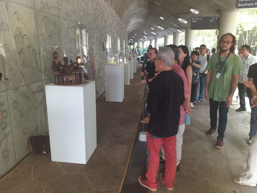 Three Wise Men was my entry at the Sculpture Society’s recent exhibition, Made in SG, at Gardens by the Bay colonnade, 20 July – 18 August, 2024. The sculpture shows a typical scene at a hawker centre — a group of older “wise” men enjoying their daily chatter, solving the world’s problems over their cups of kopi-o. I felt it was an appropriate contribution to the exhibition which is meant to “present sculptures encapsulating the essence of our homeland, Singapore” and illustrating “the intricate tapestry of our collective childhood memories, local culture, landscapes, indigenous flora, and diverse lifestyles”, to quote the brief sent out the by the society.