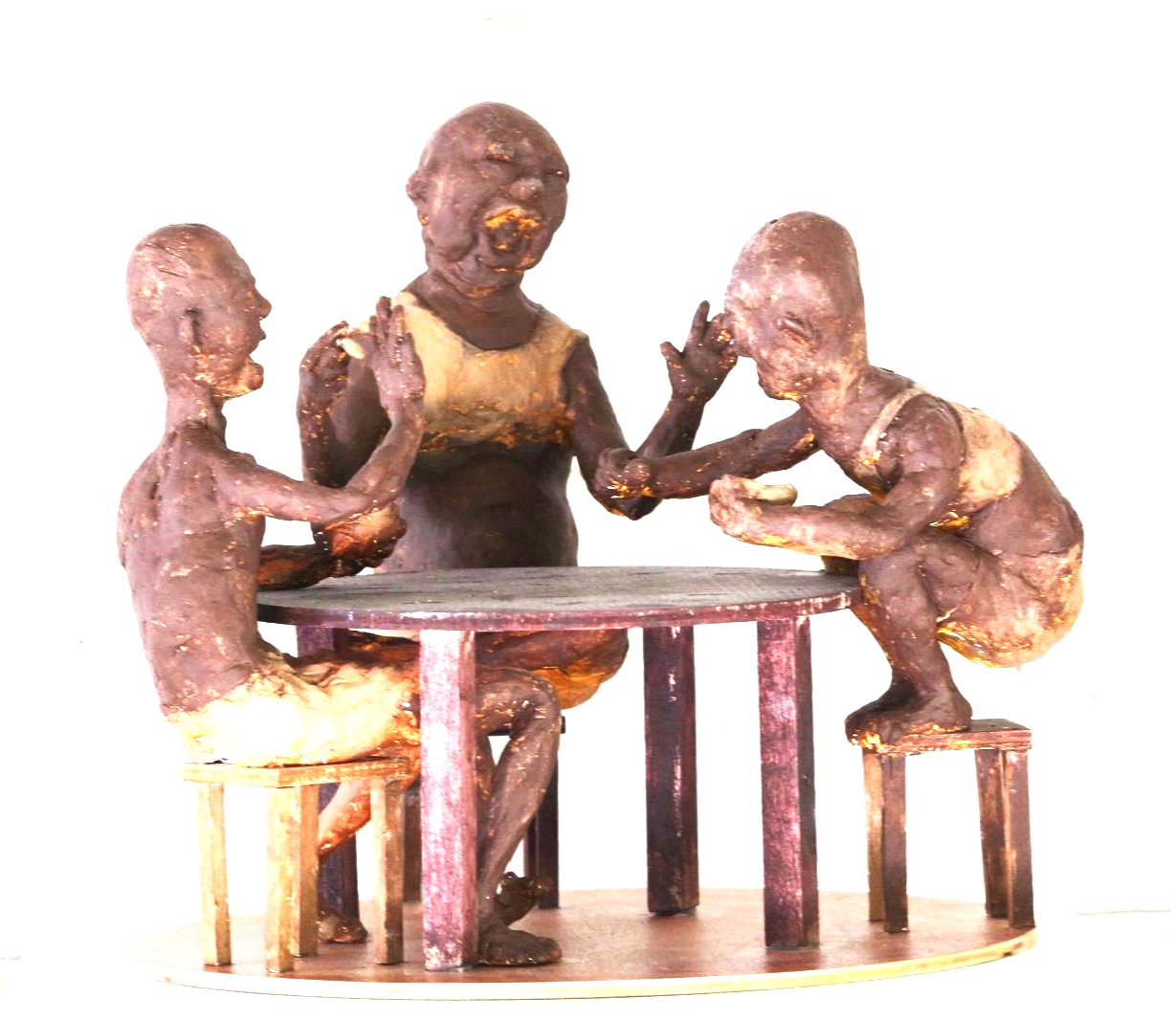 Three Wise Men was my entry at the Sculpture Society’s recent exhibition, Made in SG, at Gardens by the Bay colonnade, 20 July – 18 August, 2024. The sculpture shows a typical scene at a hawker centre — a group of older “wise” men enjoying their daily chatter, solving the world’s problems over their cups of kopi-o. I felt it was an appropriate contribution to the exhibition which is meant to “present sculptures encapsulating the essence of our homeland, Singapore” and illustrating “the intricate tapestry of our collective childhood memories, local culture, landscapes, indigenous flora, and diverse lifestyles”, to quote the brief sent out the by the society.